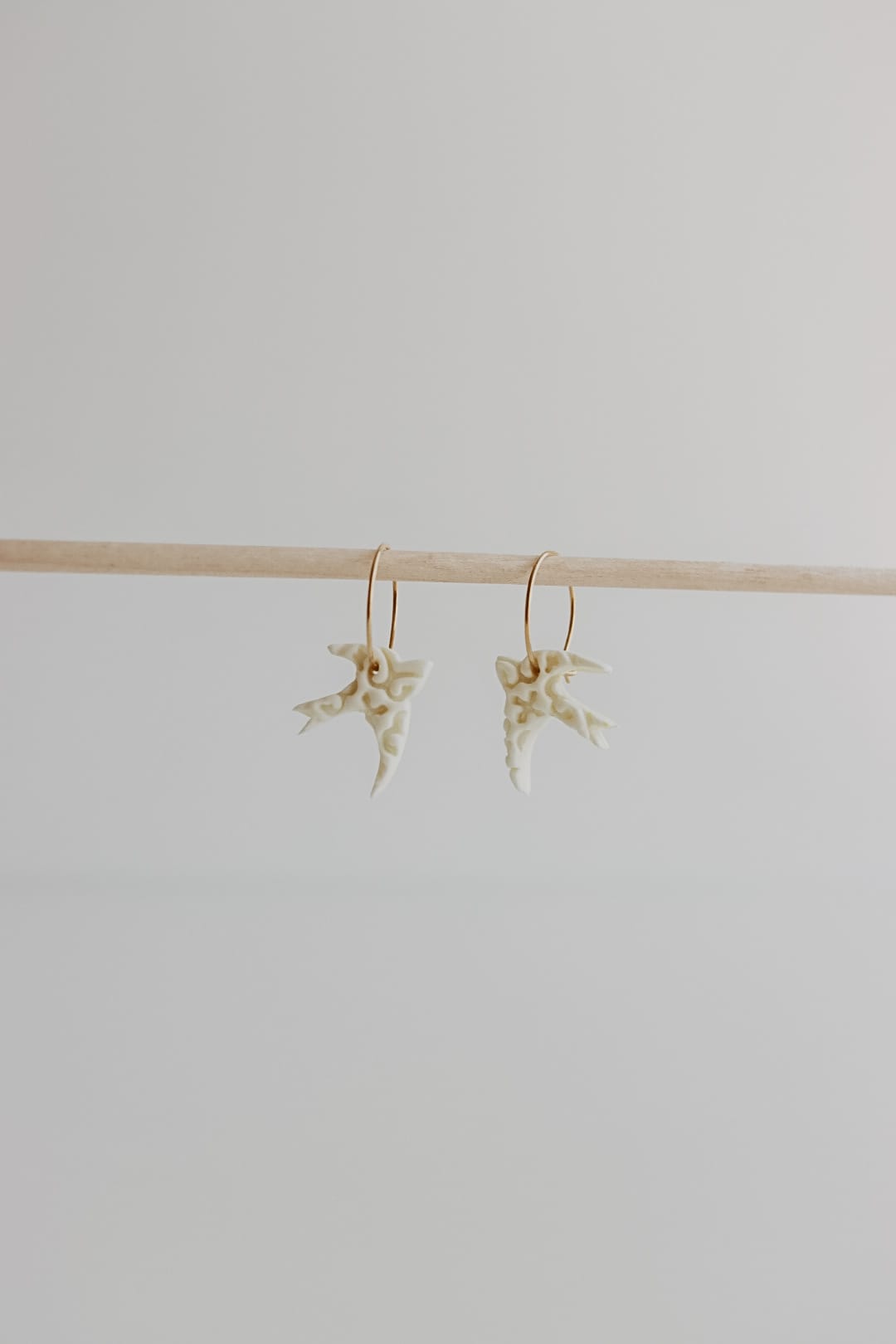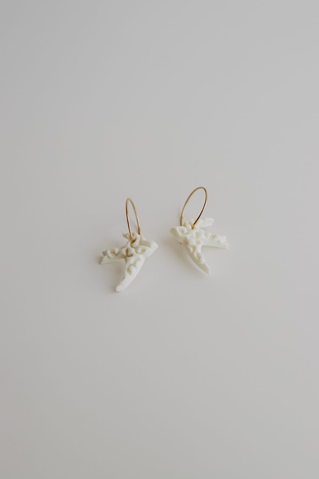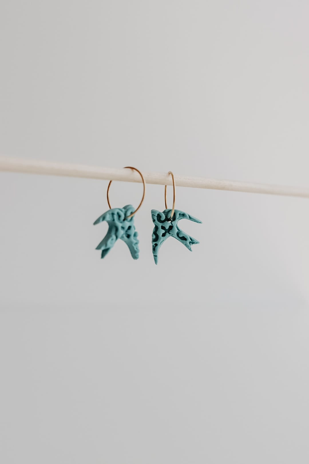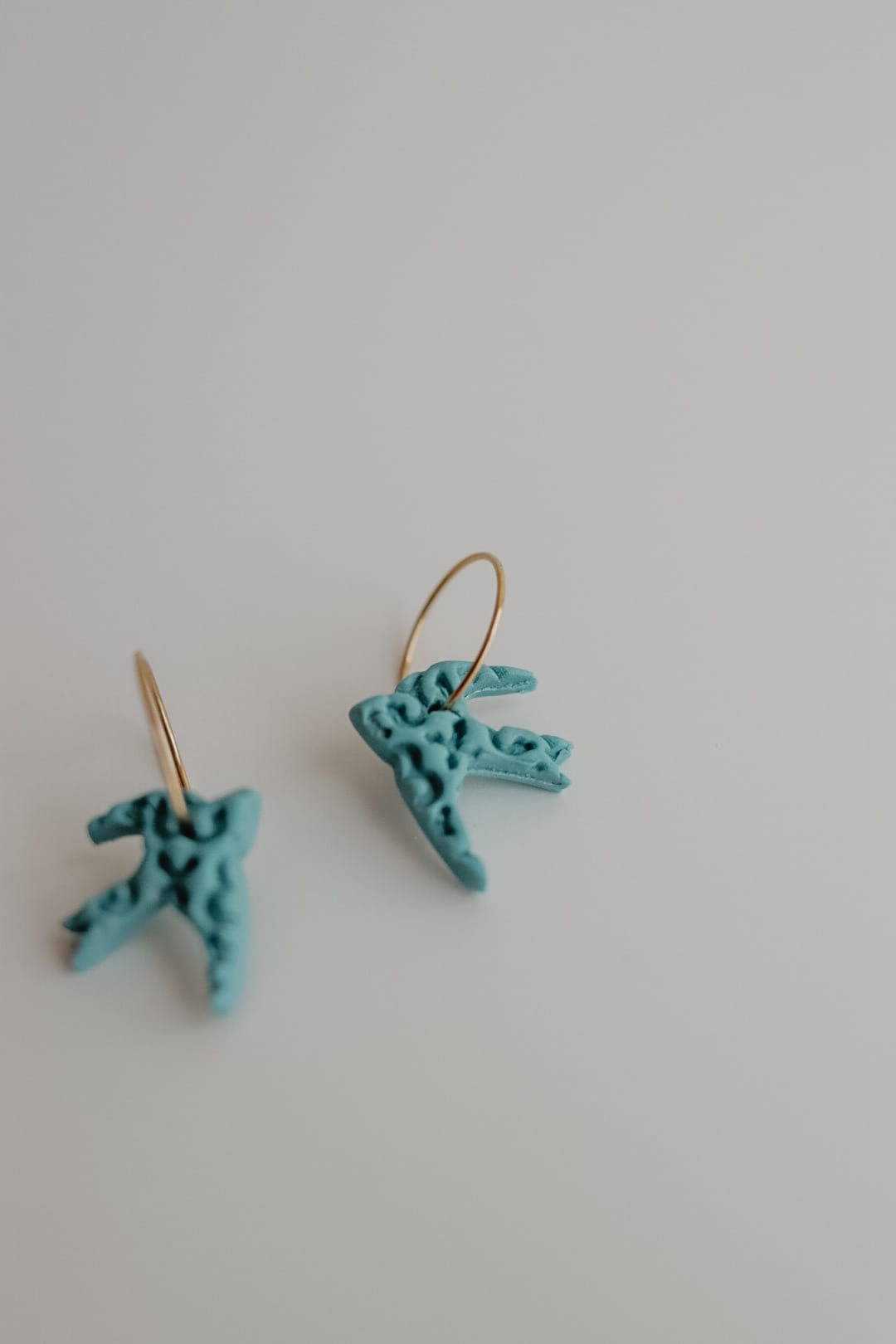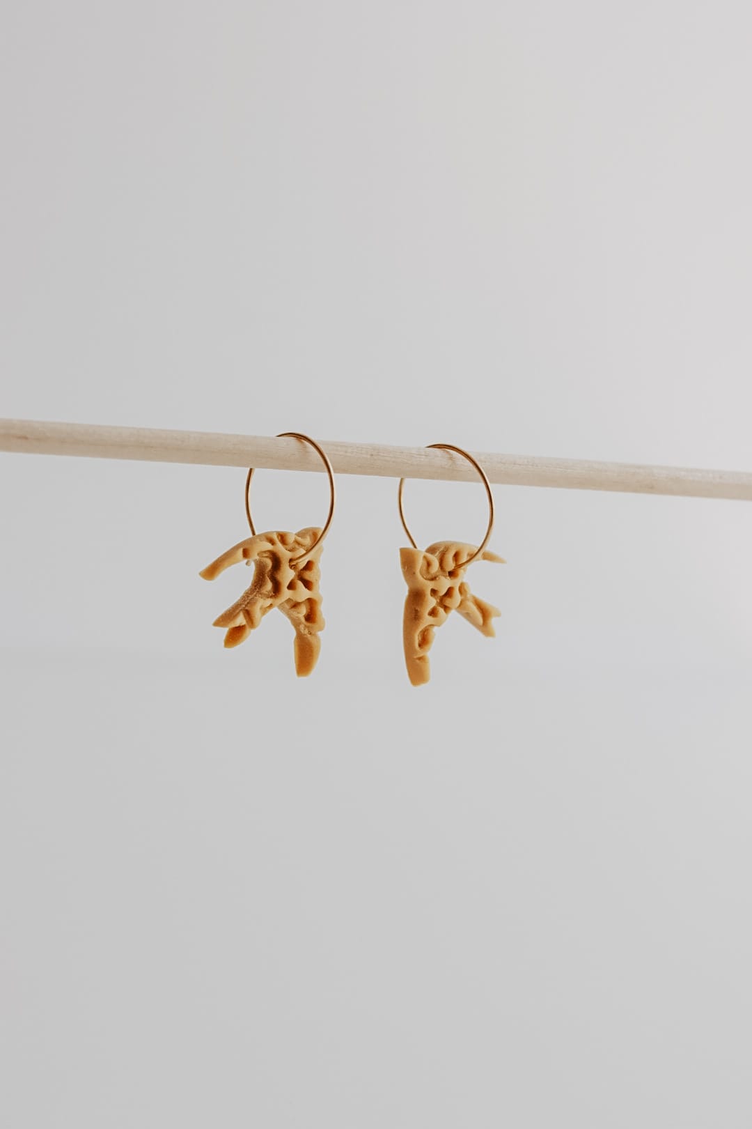 Estão disponíveis em três cores e cada par de brincos tem argolas em aço-inóxidável, em dourado ou prateado. A peça tem 20 mm de comprimento. Hipoalergénico.
