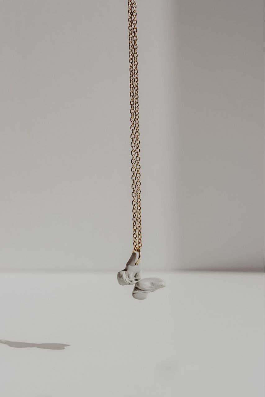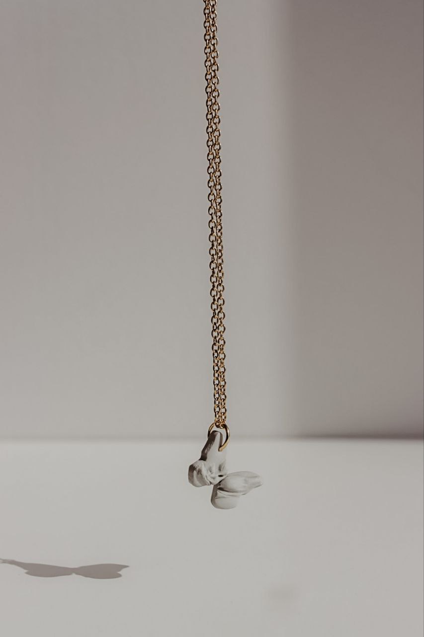 Durante o primeiro ano de página, foram muitos os pedidos que me foram feitos para pendentes em formato de borboleta. Resolvi incluí-la nesta coleção, trazendo nela os moldes botânicos das primeiras flores. É uma peça dedicada às minhas clientes e representa a simpatia, a fidelidade e a empatia que conseguimos (e devemos) ter umas pelas outras.