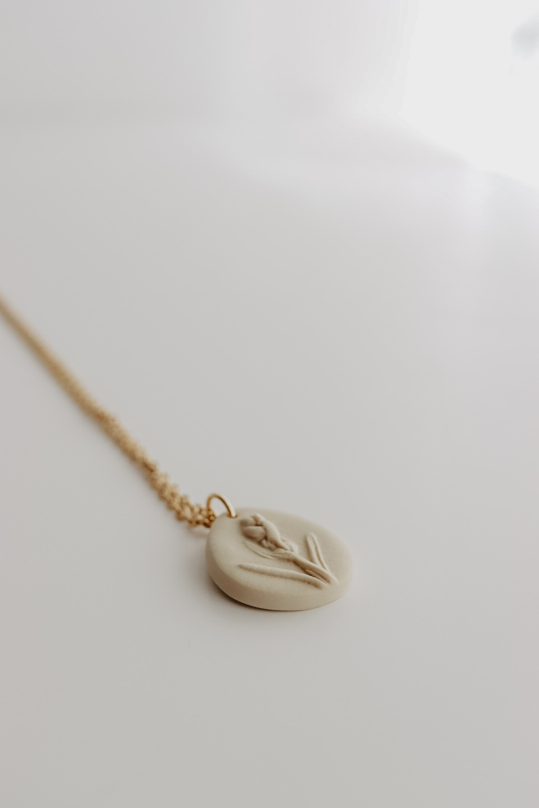 Quando fizemos os brincos a partir desta Alfazema, soubemos que tinhamos de ter a mesma imagem para um colar. Detalhada, toda ela um espelho da natureza. Está disponível em duas cores.