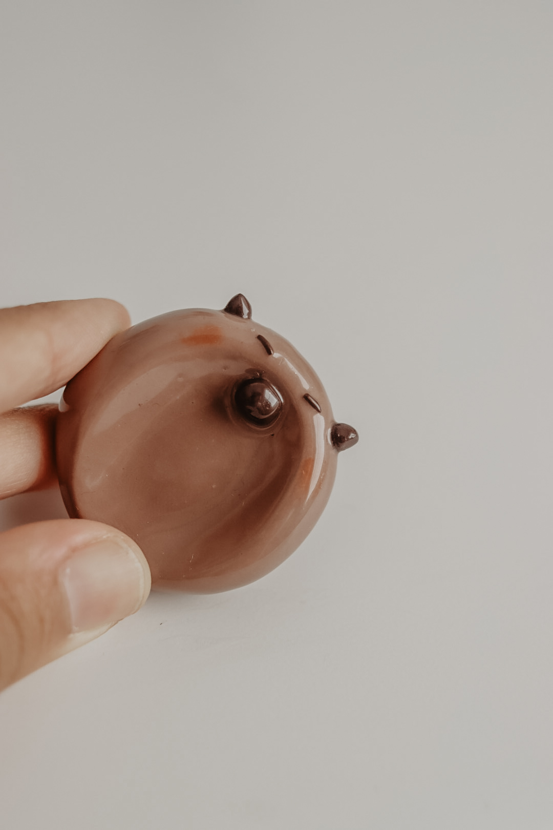 Cada peça pode ser pedida com a superfície lisa ou texturizada. Com ou sem spinner. É feita e modelada à mão, com acabamento brilhante para um toque mais agradável.
