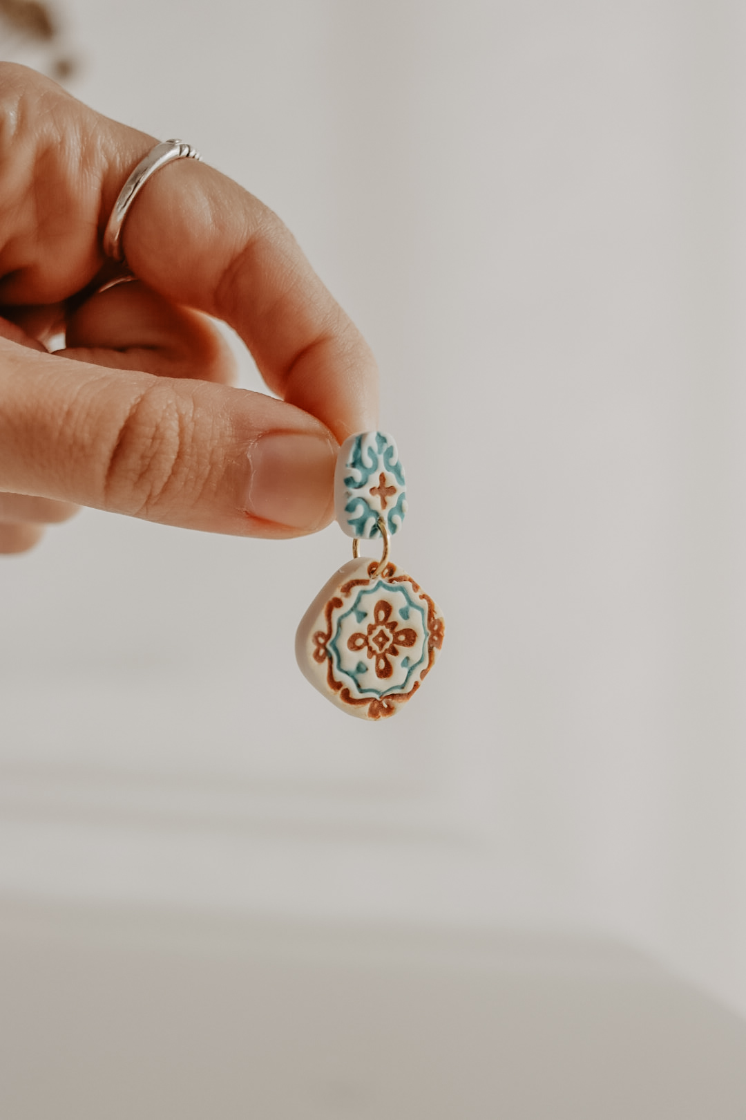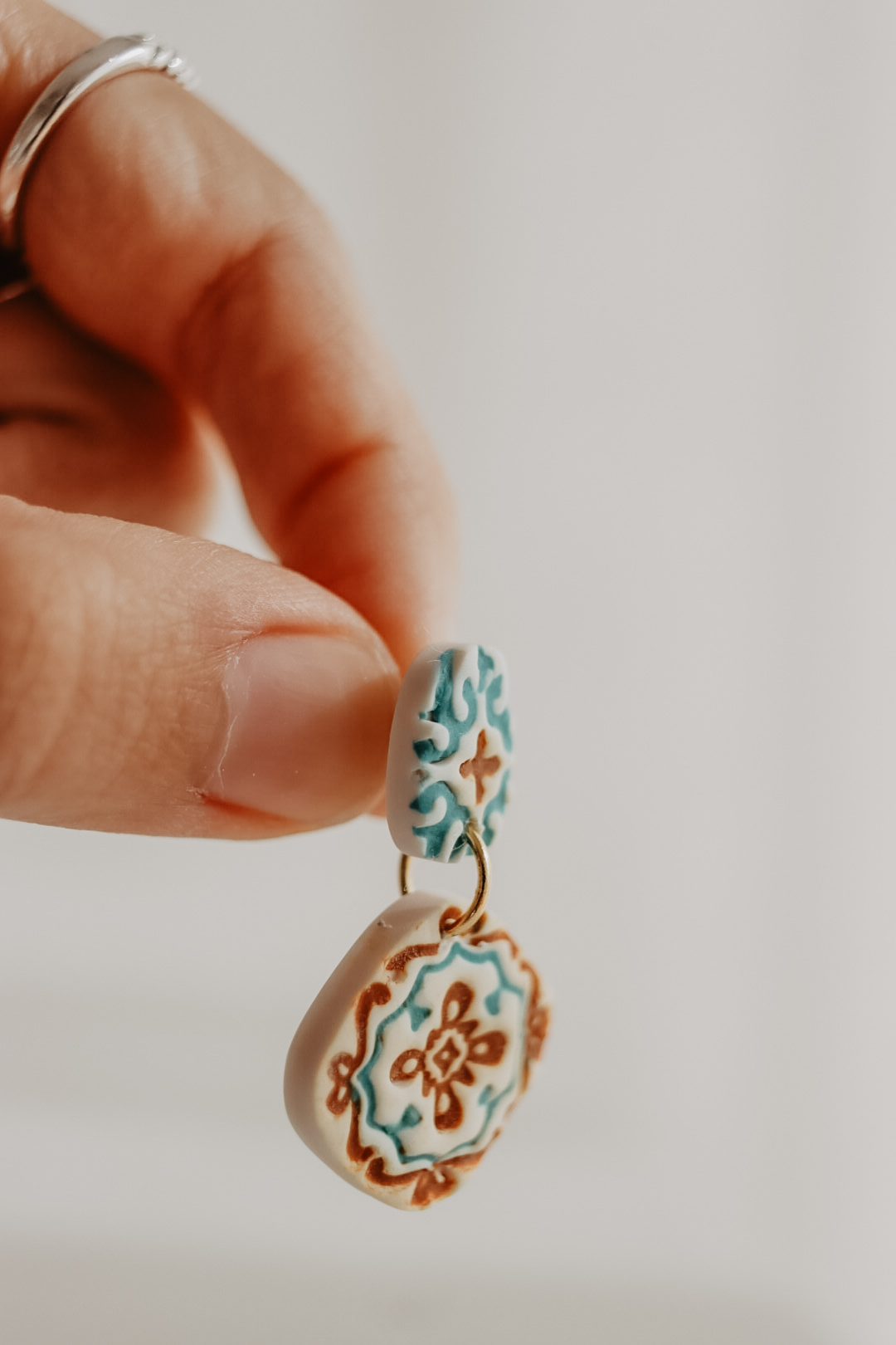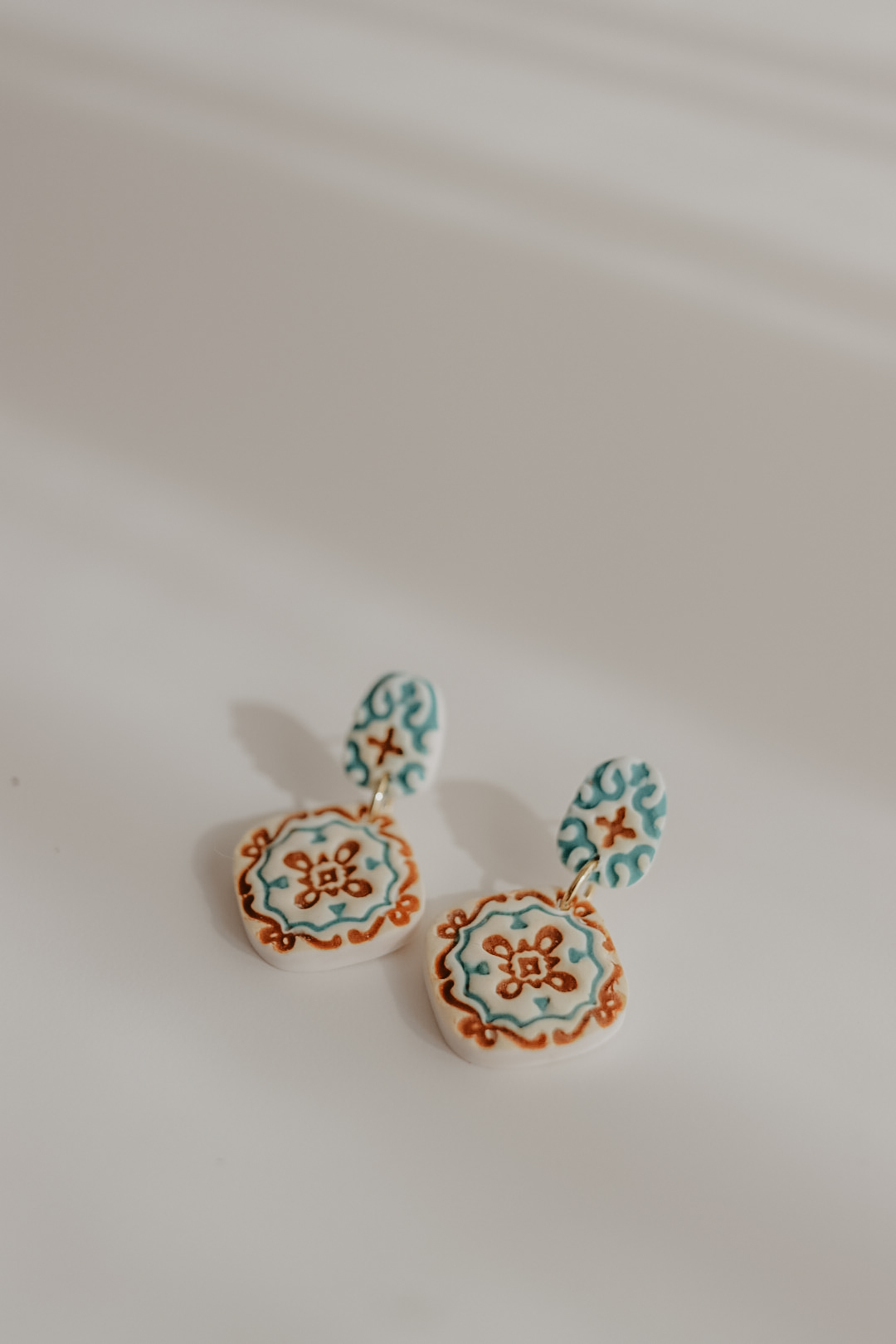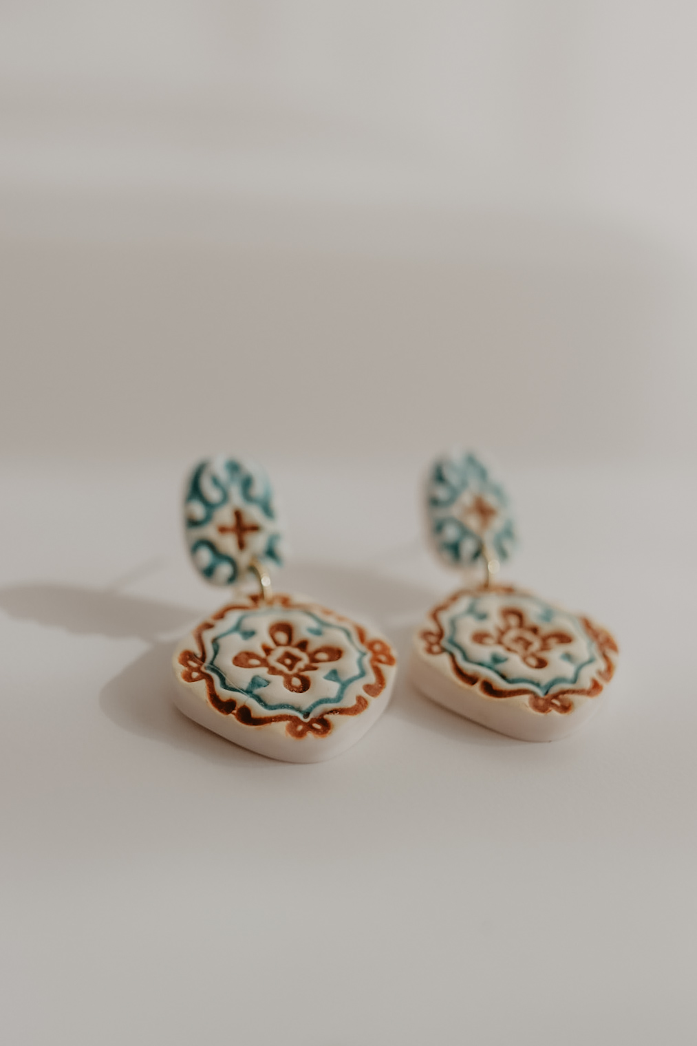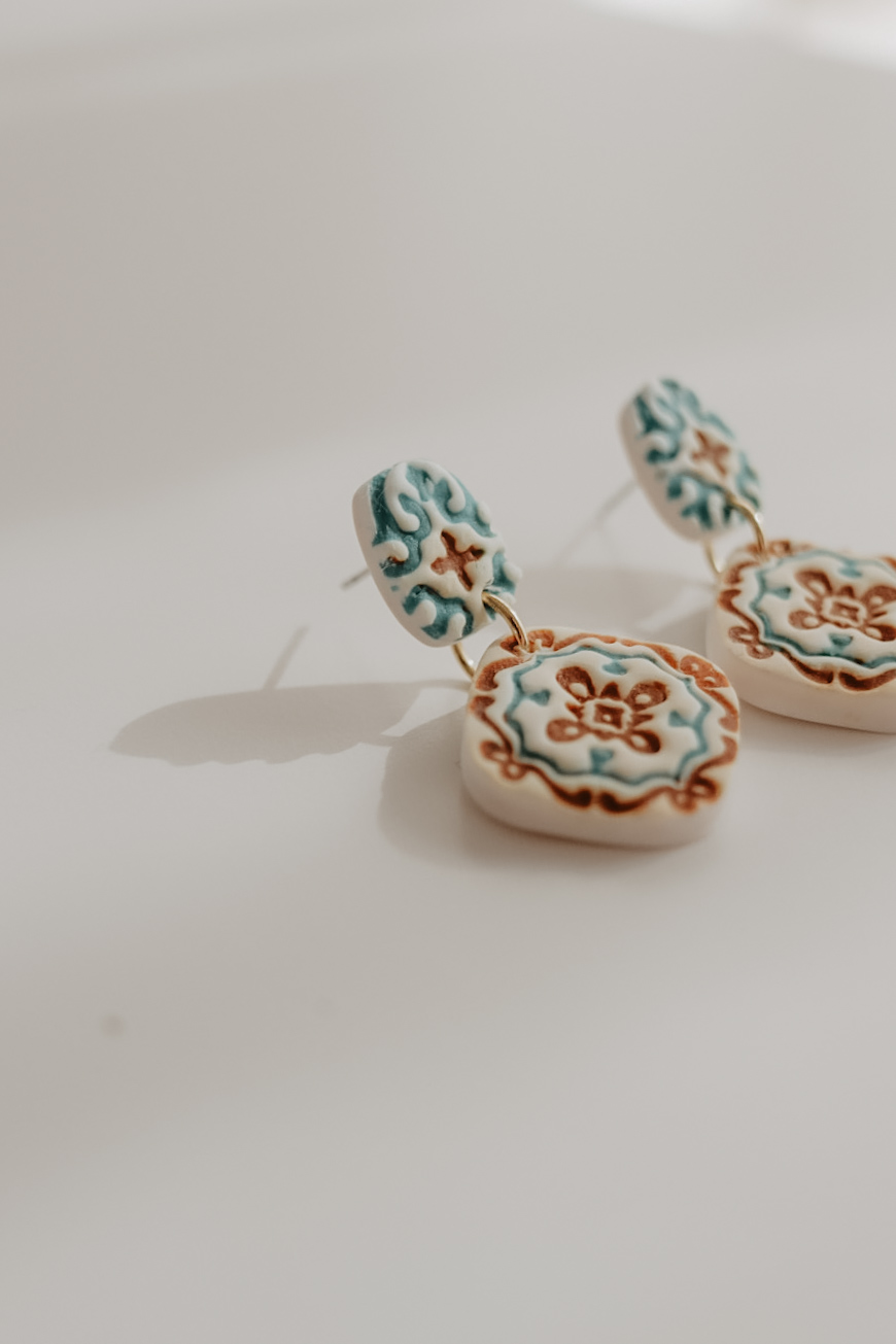 Feitos à mão, com pino traseiro em aço-inóxidável. O brinco tem 38 mm de comprimento. Hipoalergénico.
