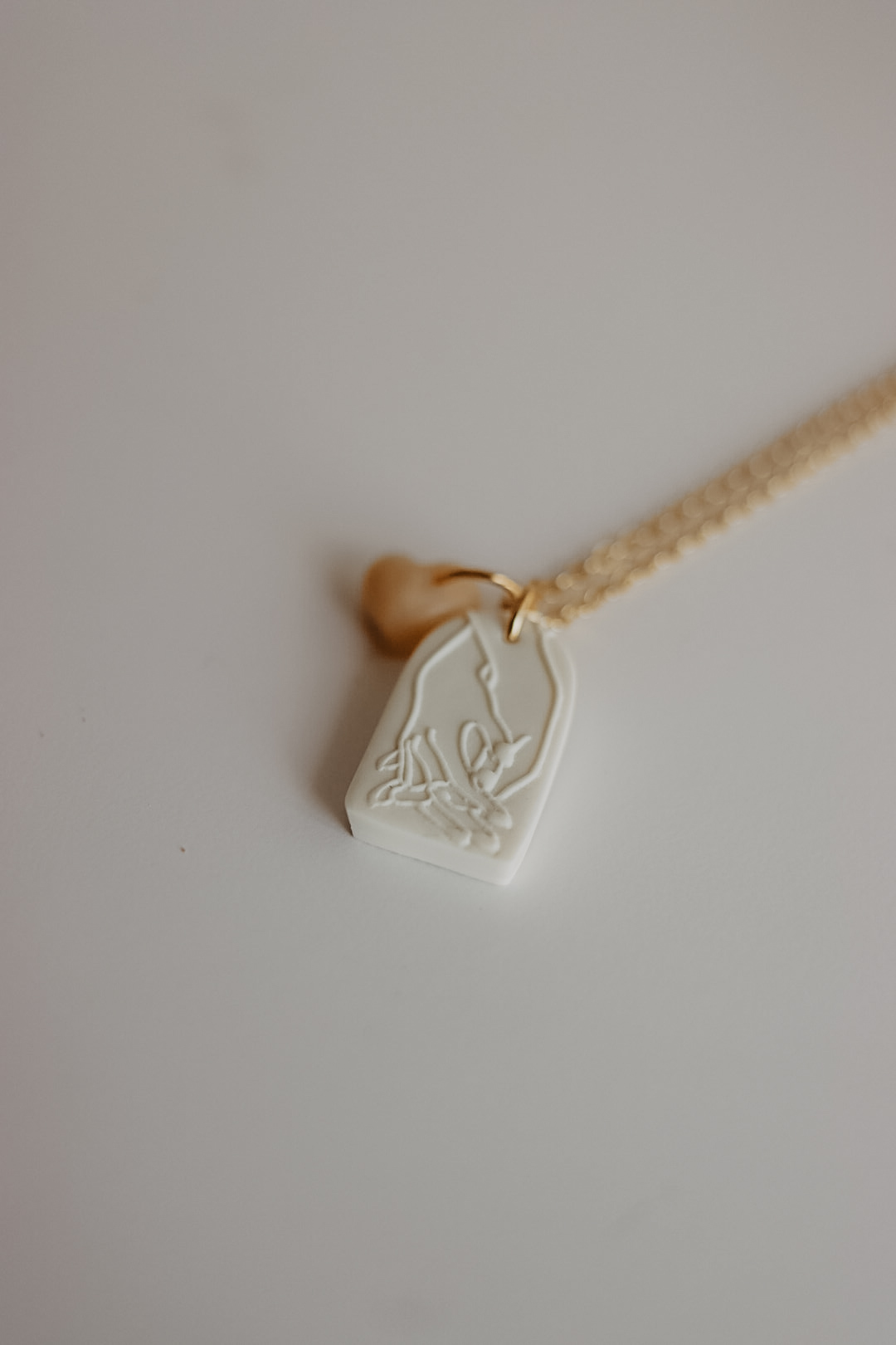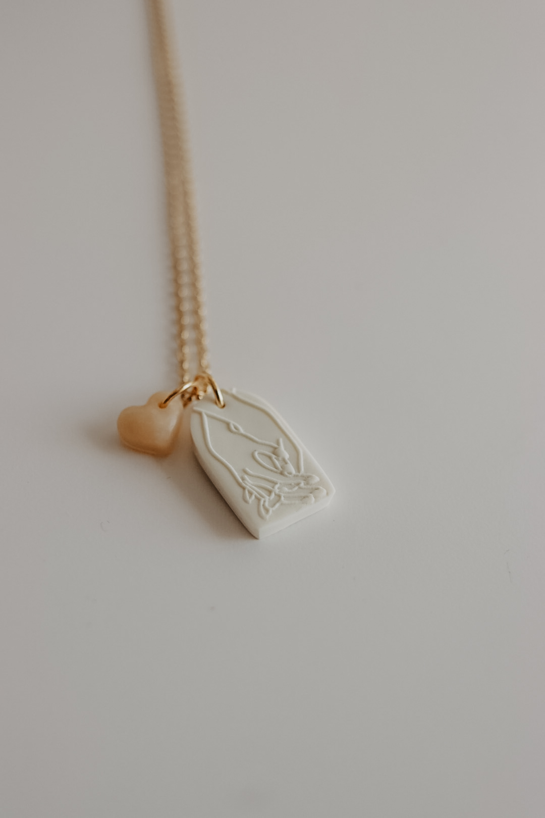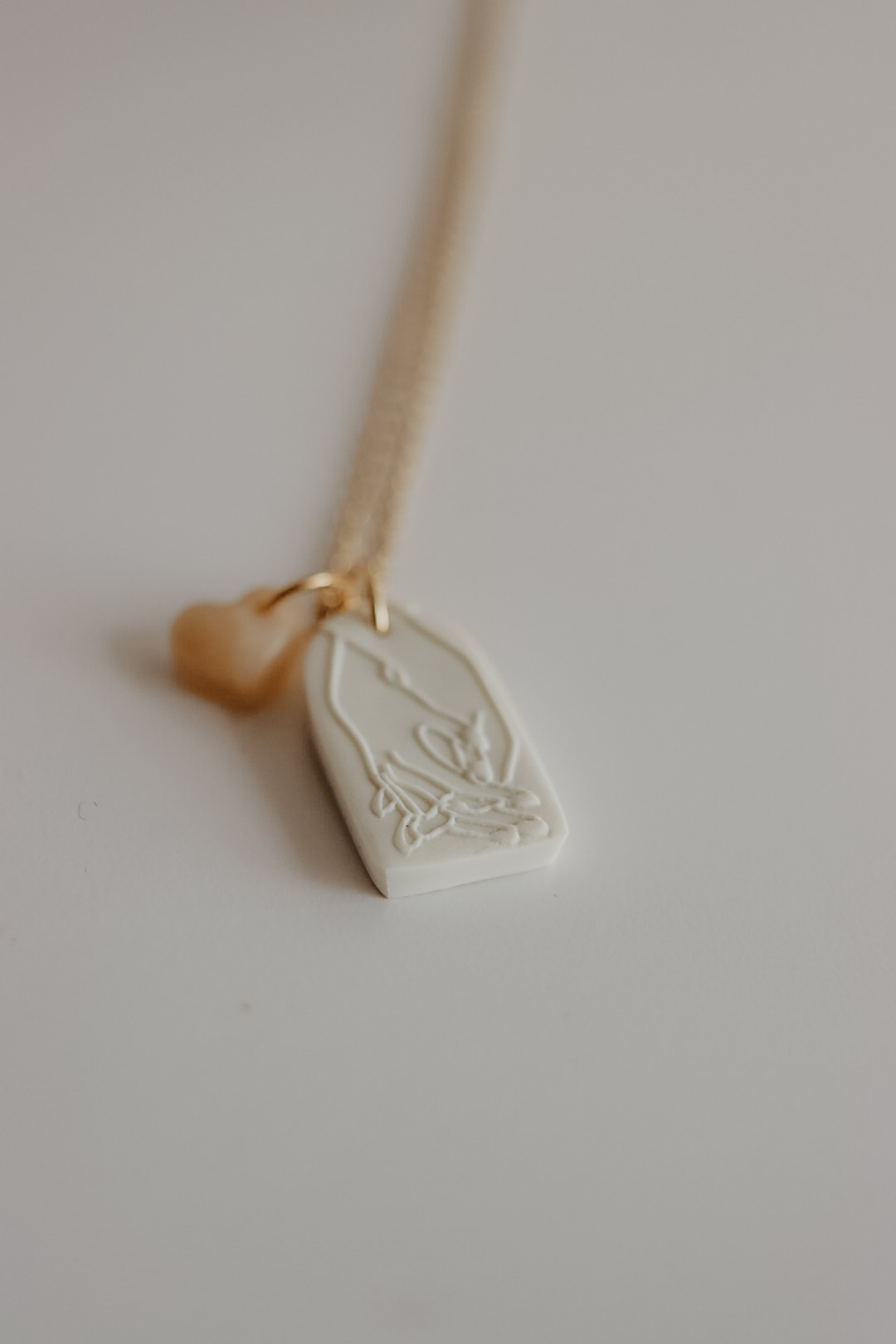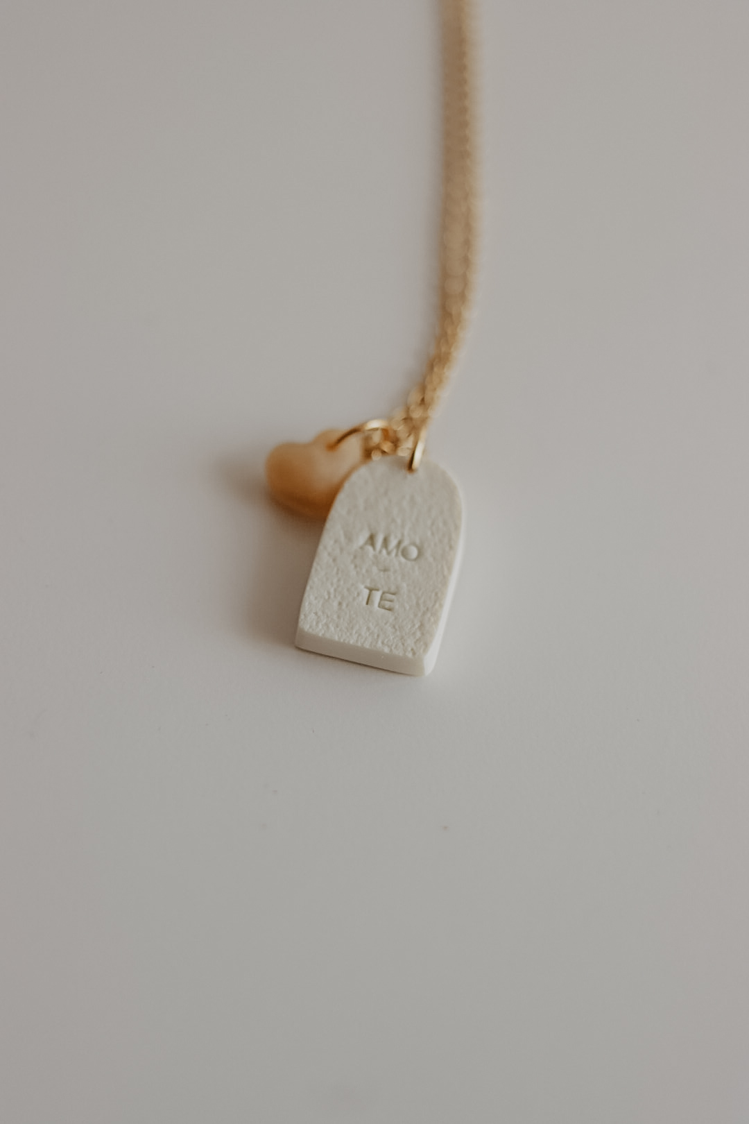 Esta peça nasceu de um pedido de amigos. Alguma coisa que simbolizasse o relacionamento deles. De tão simples e bonita que ficou, decidi incluí-la na coleção para estar disponível no próximo dia de S. Valentim. É composta pela peça base onde está a imagem de duas mãos dadas, e um pendente extra em formato de coração em cor translúcida. Na parte de trás tem a palavra "Amo-te".