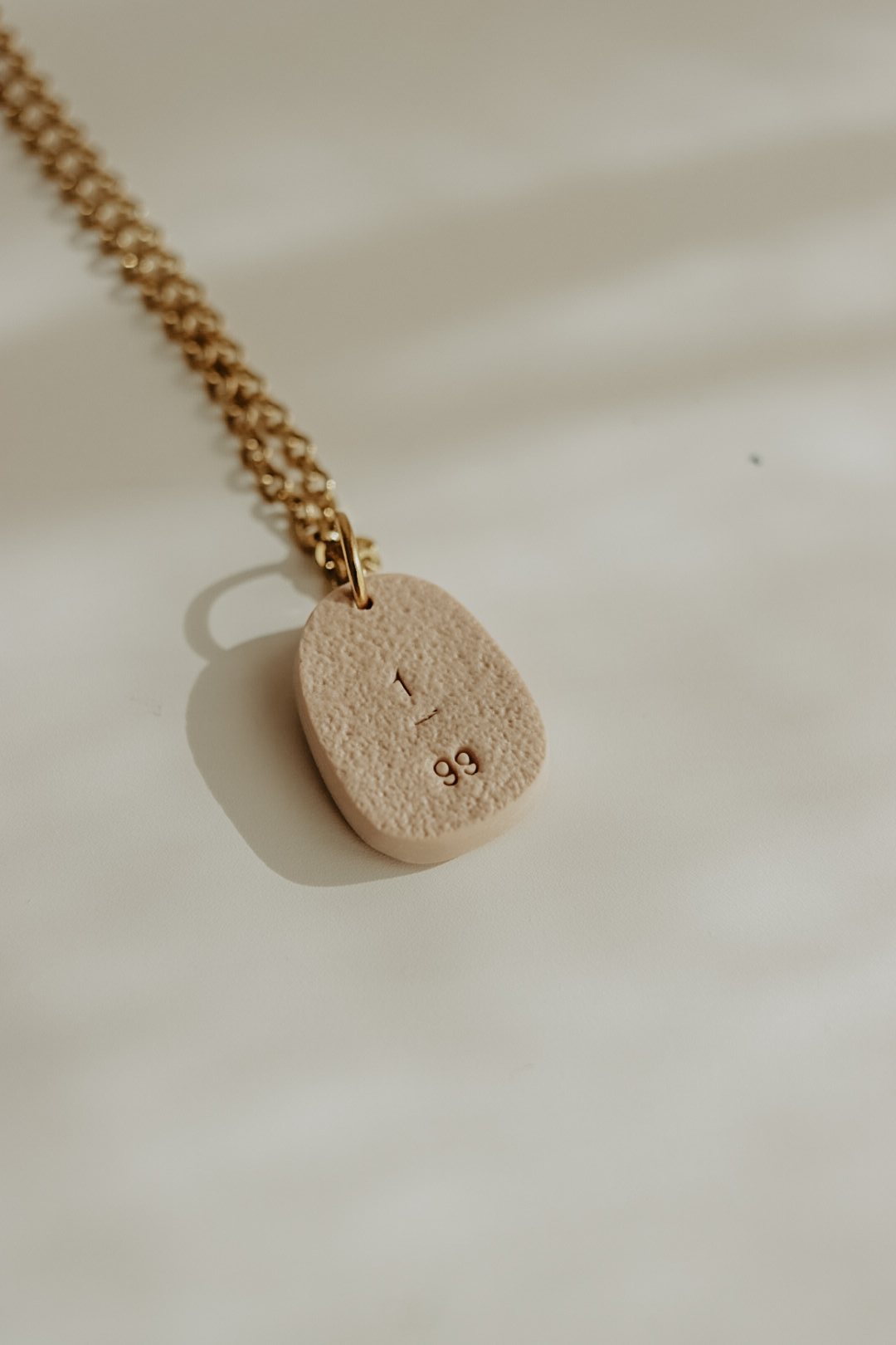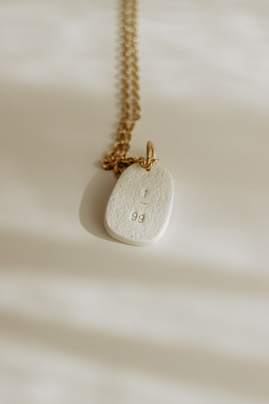 Este pendente tem cerca de 20mm de altura e está disponível em duas cores. Numa das faces tem Jesus e as ovelhas, na outra face tem uma inscrição onde diz "1/99".