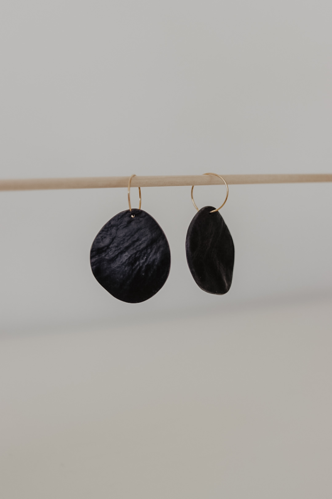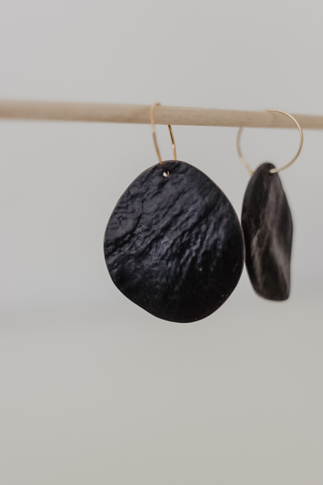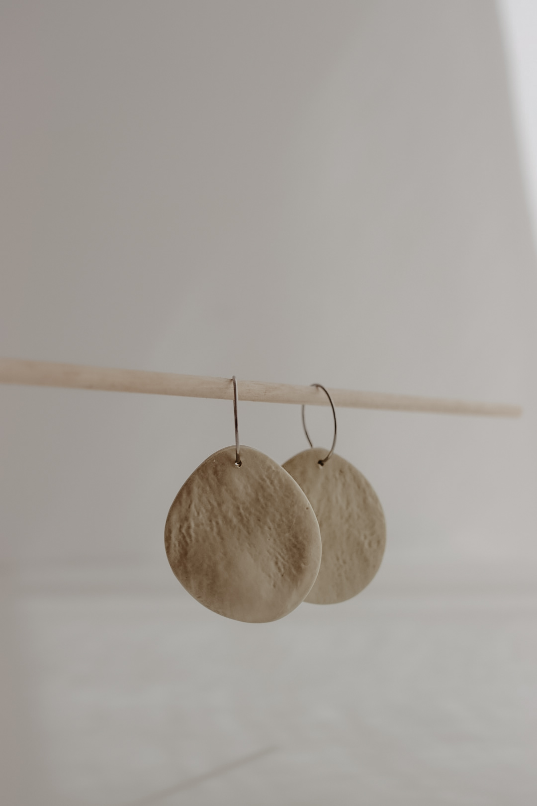 Feito à mão, com argola em aço-inóxidável, em dourado ou prateado. O brinco tem 33 mm de comprimento. Hipoalergénico.