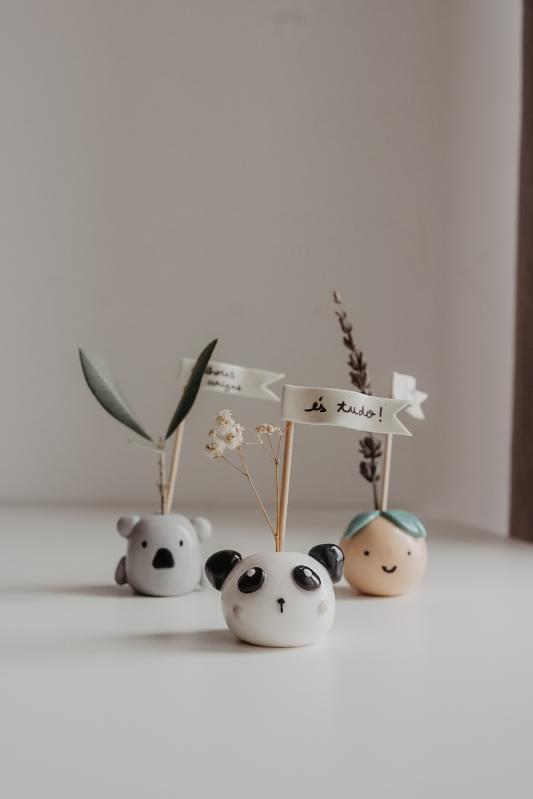 São as jarrinhas mais mimosas e vão aquecer o coração de qualquer um que as receba. São decorativas, feitas com muito cuidado e tornam qualquer espaço mais bonito! Com três flores à escolha, é também possível colocar uma das três frases disponíveis. Caso queira uma frase personalizada, por favor escolha essa opção e coloque a frase pretendida no campo das observações, na página referente aos dados de envio, após confirmar o carrinho de compras. A frase deverá ter no máximo 4 palavras.